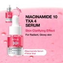 Anua Niacinaminde 10% + TXA 4% Serum: Aqua(Water), Glycerin, Niacinamide, Tranexamic Acid, Butylene Glycol, Diethoxyethyl Succinate, 1,2-Hexanediol, Arbutin, Pentylene Glycol, Sodium Hyaluronate, Xanthan Gum, Betaine Salicylate, Alpha-Arbutin, Sucrose Palmitate, Coccinia Indica Fruit Extract, Eclipta Prostrata Extract, Hydrogenated Lecithin, Gellan Gum, Macadamia Integrifolia Seed Oil, Olea Europaea (Olive) Fruit Oil, Simmondsia Chinensis (Jojoba) Seed Oil, Vitis Vinifera (Grape) Seed Oil, Sodium Phytate, Cellulose, Caprylic/Capric Triglyceride, Panthenol, Cyanocobalamin, Polyglutamic Acid, 3-O-Ethyl Ascorbic Acid, Ceramide NP, Dextrin, Theobroma Cacao (Cocoa) Extract, Hydrolyzed Hyaluronic Acid, Chamaecyparis Obtusa Leaf Extract, Prunus Persica (Peach) Flower Extract, Camellia Sinensis Seed Oil, Asiaticoside, Madecassic Acid, Asiatic Acid, Yeast Ferment Extract, Centella Asiatica Extract, Artemisia Princeps Leaf Extract, Candida Bombicola/Glucose/Methy Rapeseedate Ferment, Dimethylsilanol Hyaluronate, Hydroly zed Sodium Hyaluronate, Hyaluronic Acid, Potassium Hyaluronate, Hydroxypropyltrimonium Hyaluronate, Sodium Hyaluronate Crosspolymer, Sodium Hyaluronate Dimethylsilanol, Sodium Acetylated Hyaluronate.