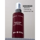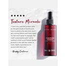 Image 3 - A maroon spray bottle for hair product is displayed, labeled DAIMON · BARBER, TEXTURE TONIC, TONIQUE TEXTURISANT, 100mle e 3.38 US FL.OZ, with an adjacent text box stating PACKED WITH BEESWAX CASTOR OIL KAHAI NUT OIL. Image 4 - A dark red bottle of Daimon Barber Texture Tonic with a black pump dispenser is displayed alongside a customer review that features five stars and reads: Texture Miracle, I have now used this product daily for the past couple of months and have to admit it is the best tonic ever! I get a strong texture and it also makes my hair much easier to manage. The smell is phenomenal and I will be looking to stock up on Daimon Barber products in the next few weeks to come. Highly recommend it to anyone with thick hair. - Happy Customer. The bottle itself is labeled DAIMON BARBER, TEXTURE TONIC, TONIQUE TEXTURISANT, 100ml e, 3.38 US fl. oz.
