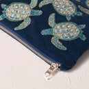 The intricate turtle motif is sewn from shimmering gold and aqua-blue thread for an elegant finish. Store your everyday toiletries in this luxurious piece before setting off on a day trip or weekend away.