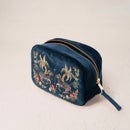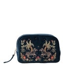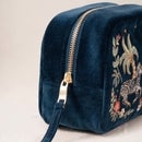 Adorned with a hand-illustrated and carefully embroidered design, the Elizabeth Scarlett Wild Zebra Velvet Makeup Bag stars an intricate animal design against a navy base.