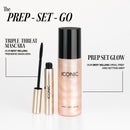 Create a flawless makeup look with the ICONIC London Prep Set GO! gift set. This duo features a priming and setting mist alongside a volumising mascara, working in harmony to deliver a radiant finish and high-impact lashes.