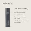 Shake well, then spray throughout the hair for finishing texture, at the roots for body and support, or brush through the base for oil control.