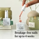 To strengthen, brush on 2 layers of our thick Mylee Super Pigment Builder Gel, curing each layer for 99 seconds using the Mylee Grande LED Lamp* on low heat mode. To build extensions of up to 1cm, attach a Mylee Paper Nail Form* and brush the Builder Gel over the entire nail, extending the tip, and cure for 99 seconds. Repeat this step to build a strong extension.