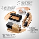 Image 3 - Image features various NARS makeup products arranged artistically, including a foundation, concealer, eye brightener, and setting powder, with visible text labeling each product: 1 LIGHT REFLECTING FOUNDATION Enhance skins luminosity with flexible, buildable coverage, 2 RADIANT CREAMY CONCEALER Effortlessly brighten, correct, and perfect all over, 3 LIGHT REFLECTING EYE BRIGHTENER Illuminate the undereye area for an instantly awakened look, 4 LIGHT REFLECTING SETTING POWDER Lock makeup in place all day with a luminous finish.