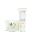 Encourage a moment of tranquillity with the NEOM Moment Of Calm. This expertly curated duo is designed to comfort the senses and promote a serene atmosphere in your home. The set features a signature fragrance, a complex blend of pure essential oils including lavender, jasmine and sandalwood.