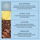 Aqua/Water/Eau, Sodium Laureth Sulfate, Sodium Lauryl Sulfate, Cocamidopropyl Betaine, Caffeine, Sandalore, Sodium Benzoate, Citric Acid, Mentha Arvensis Leaf Oil, Panthenol, Salicylic Acid, Lauric Acid, Niacinamide, Trisodium Ethylenediamine Disuccinate, Methylparaben, Polyquaternium-10, Mentha Piperita (Peppermint) Oil, Sodium Hydroxide, Limonene, Biotin, Alcohol, Tocopherol, Sodium Citrate, Sodium Chloride, Sodium Xylenesulfonate.