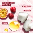 Coconut oil and vitamin E lock in hydration to condition the lips, while passionfruit and raspberry oil deliver antioxidant protection. The non-sticky oil envelops the lips in a nourishing veil to encourage a smooth, plumped appearance in just one swipe.