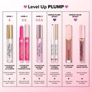 Image 7 - An infographic titled Level Up PLUMP displays various lip products from Too Faced categorized by levels, including descriptions: Level 1 - Lip Injection Extreme Lip Plumper, Level 2 - Lip Injection Extreme Plumping Clicks, Level 3 - Lip Injection Maximum Plump, Bonus Plump Effect - Lip Injection Ultimate Lip Shaper, and Bonus Color Effect - Lip Injection Liquid Lipstick, with visible text summarizing use and features for each product.