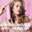 Shake can well. Spray each section of hair before heatless drying or styling with tongs, wraps and blow-outs, to hold your style all day and keep frizz at bay, or mist over a finished style to double down on hold and weatherproof finish. Brush out formula.